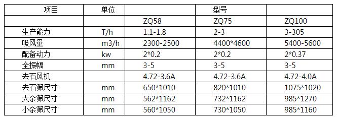 ZQ系列清理去石組合篩廣泛用于稻谷、谷子、小麥、玉米、豆類、花生、飼料及食品加工廠用作原糧的清理。不僅可清理出原糧中的大、小和輕雜質(zhì),還同時清理沙石,達到凈石的目的。該機與相應(yīng)的風(fēng)機配合使用,以振動電機為動力,通過振動電機產(chǎn)生的激振力,使篩體作往復(fù)振動。該機有三層篩面,根據(jù)不同原糧配置篩孔尺寸。(用戶訂貨時說明)上層篩面清理出大雜,如大石塊、大秸稈、樹枝等。中層篩面將小于篩孔尺寸的小雜質(zhì),如小于谷物的碎石塊、沙粒、土等從篩孔漏下排出機外。下層篩是專用于去石的凹凸不銹鋼網(wǎng)。在吸風(fēng)力的作用下,鋪滿去石篩的物料處于懸浮狀態(tài),風(fēng)力根據(jù)產(chǎn)量和物料種類是由風(fēng)量調(diào)節(jié)板調(diào)整。物料從出料口排出,沙石從出石口排出。該機由于配置振動電機,在開機和停機時,有十幾秒的較大晃動,正常工作狀態(tài)很穩(wěn)定,噪音很小。